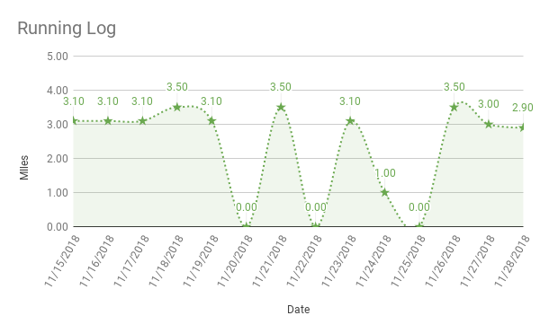 I enjoy looking at my running log and when I don't feel like getting out of bed in the morning, I think how much I don't want to see that zero dip in the chart. It's simple but effective.
